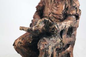 • Portrait sculpture of Aston resting his chin on his hand