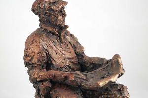 Portrait sculpture of Aston resting his chin on his hand