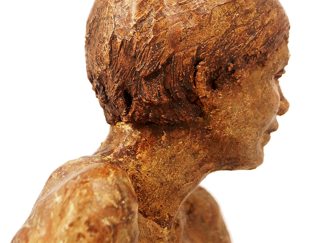 Portrait sculpture of Aston resting his chin on his hand