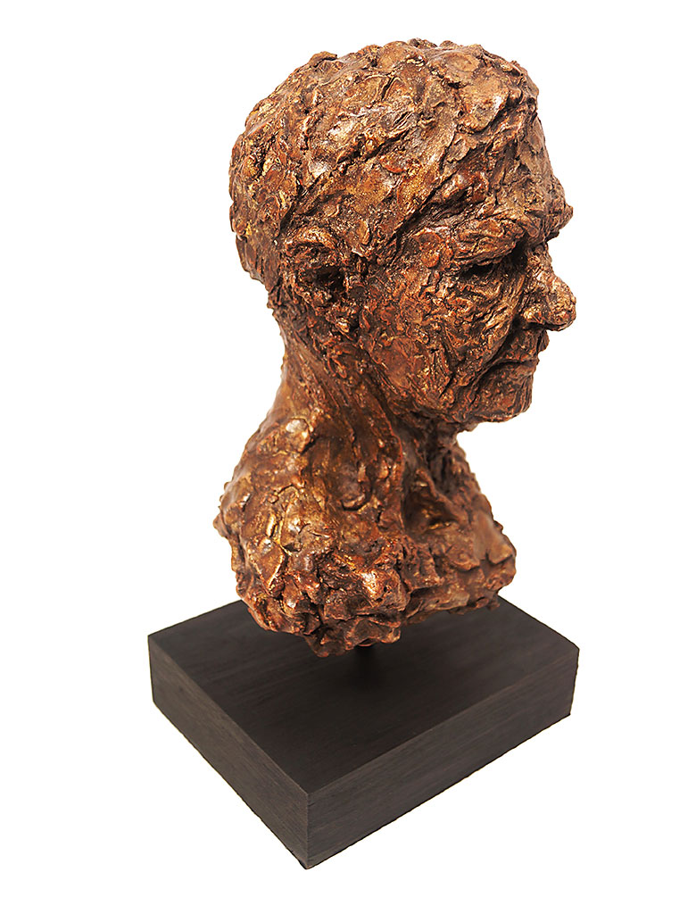 Portrait sculpture of Aston resting his chin on his hand