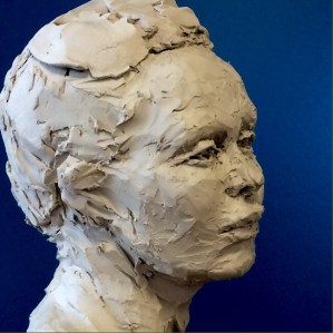 Portrait sculpture of Aston resting his chin on his hand