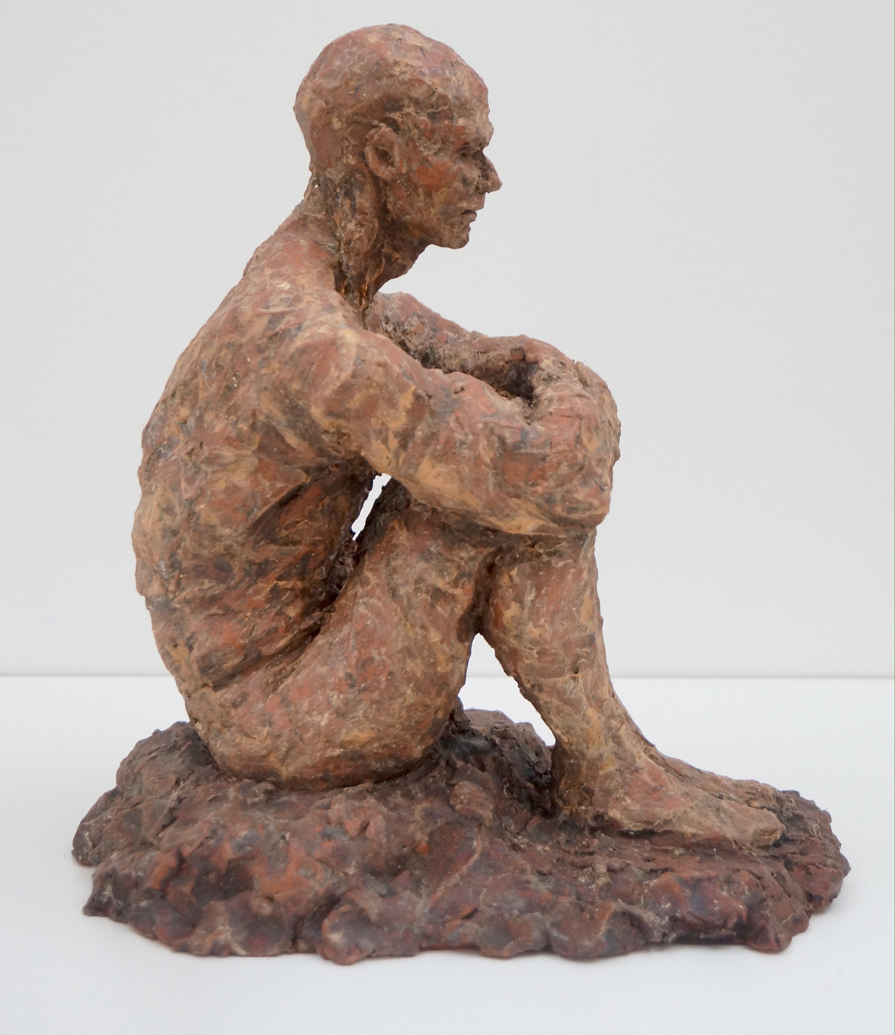 Portrait sculpture of Aston resting his chin on his hand