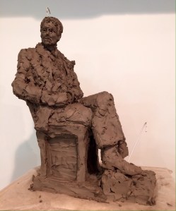 Portrait sculpture of Aston resting his chin on his hand