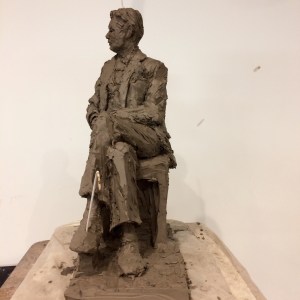 Portrait sculpture of Aston resting his chin on his hand