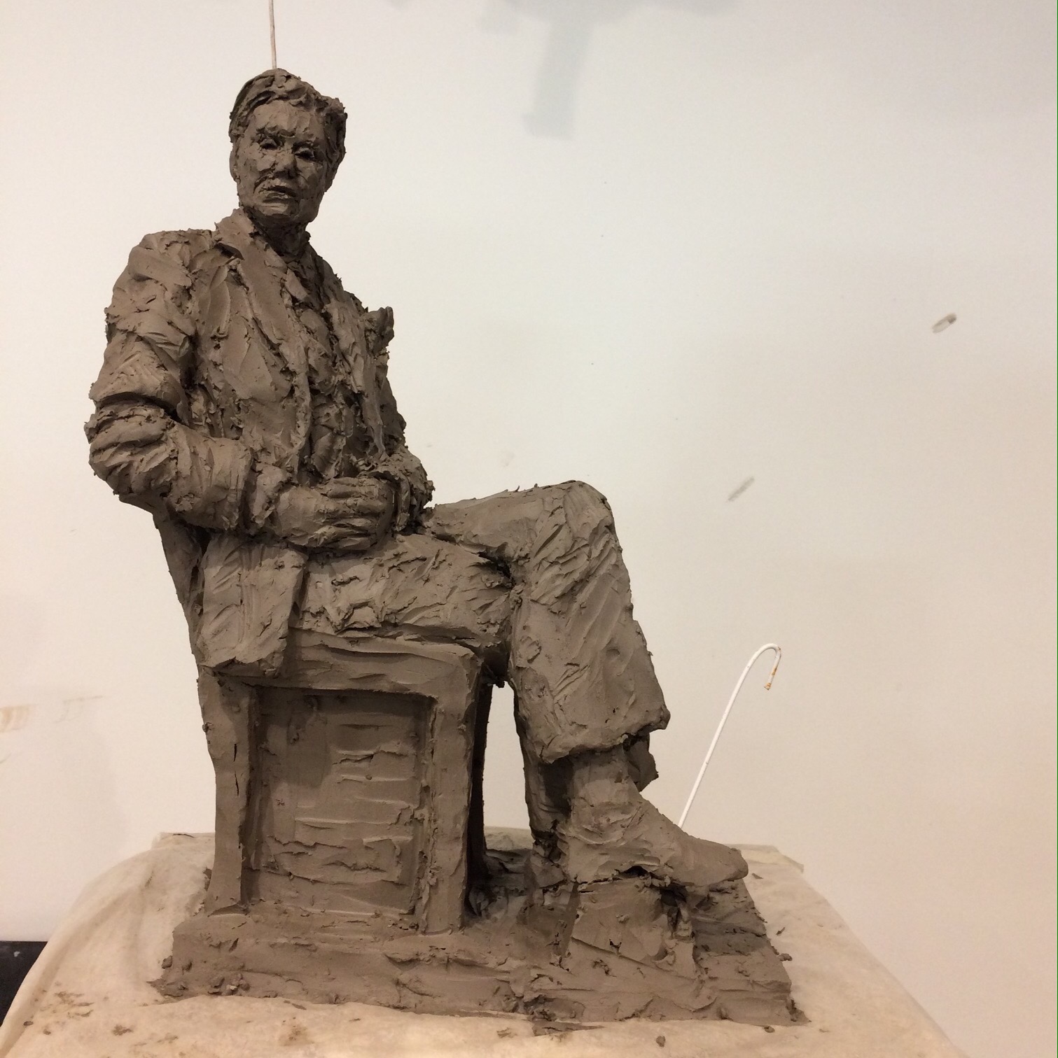 Portrait sculpture of Aston resting his chin on his hand