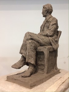 Portrait sculpture of Aston resting his chin on his hand