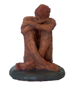Portrait sculpture of Aston resting his chin on his hand