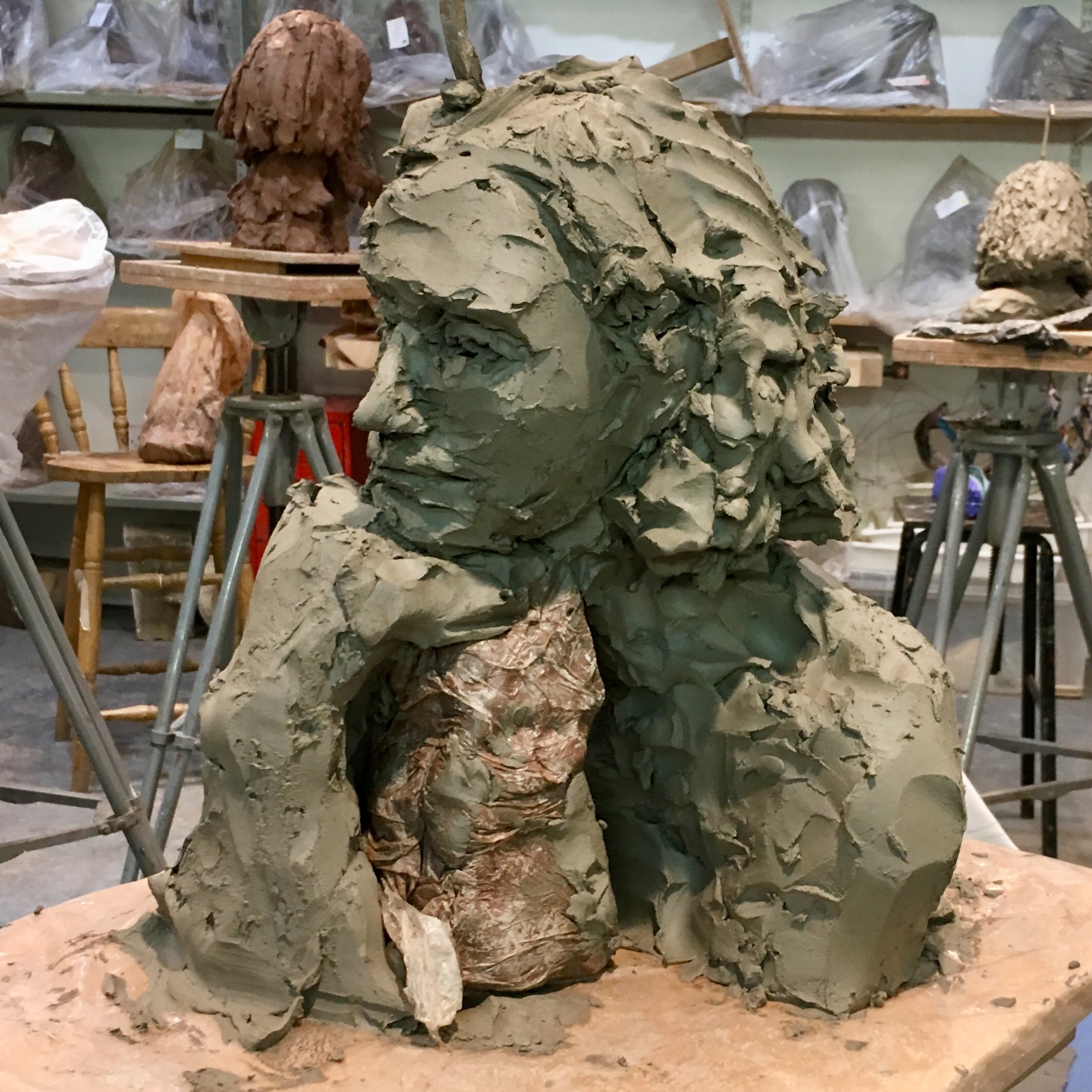 Sculpting a portrait of Aston
