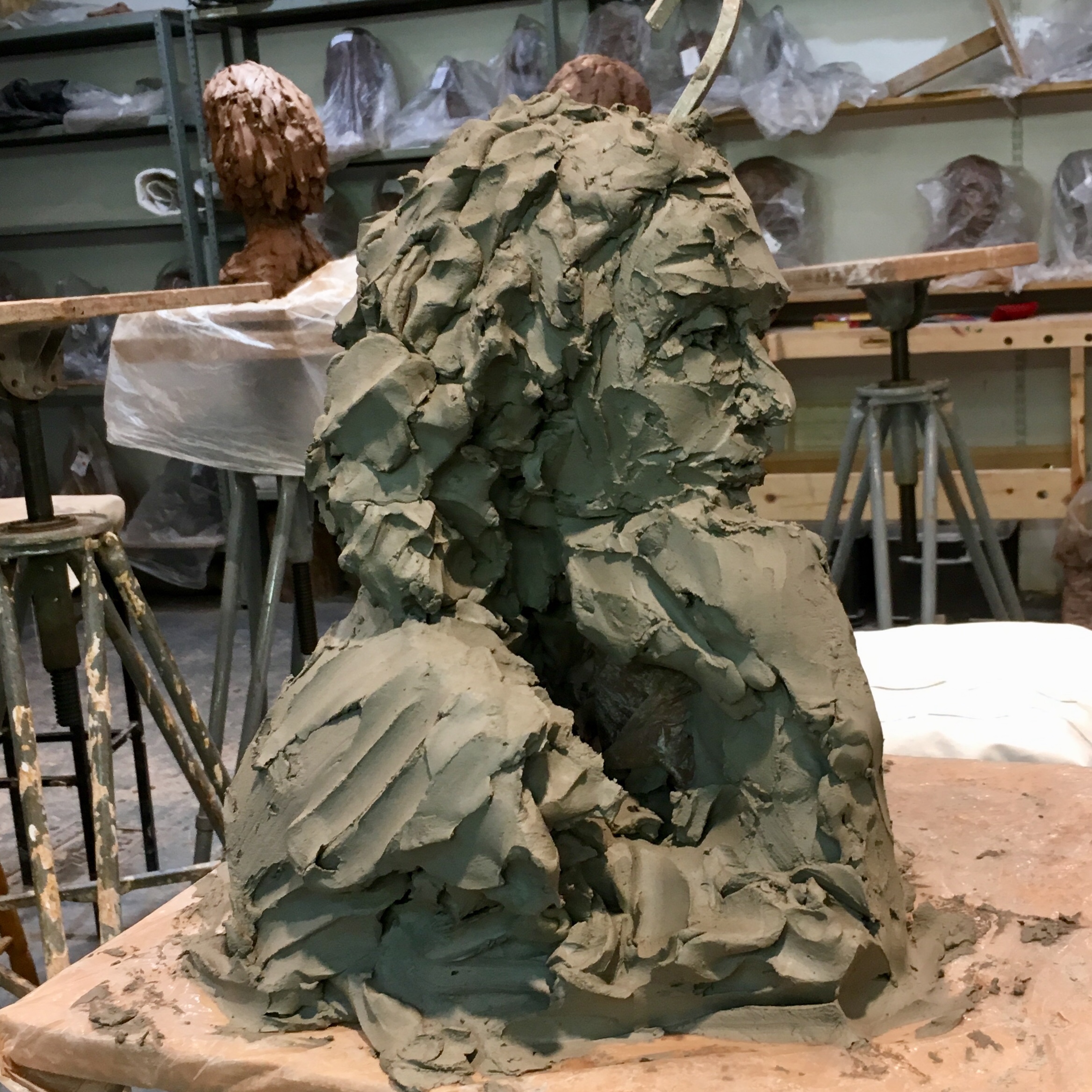 Sculpting a portrait of Aston