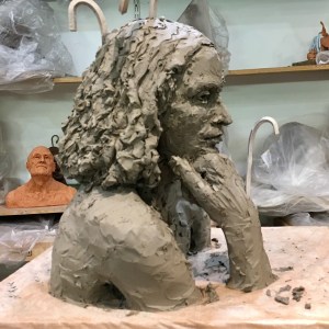 Sculpting a portrait of Aston