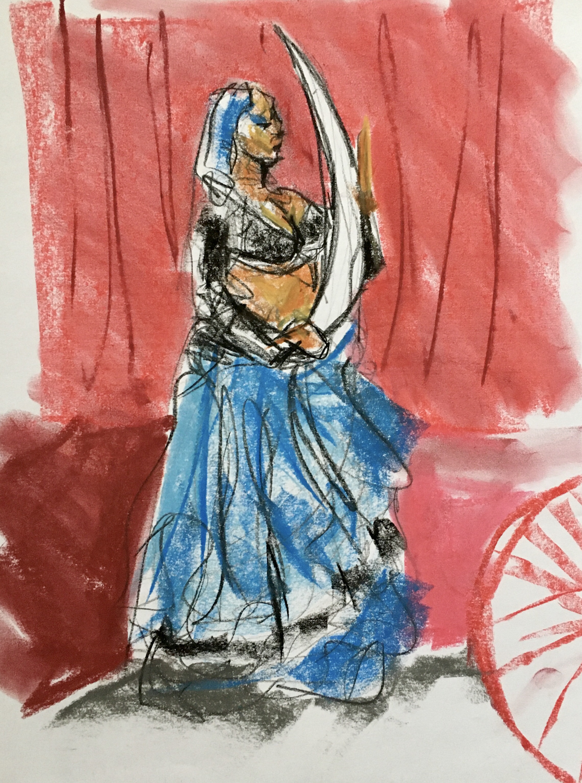 Chalk pastel quick drawings of a belly dancer